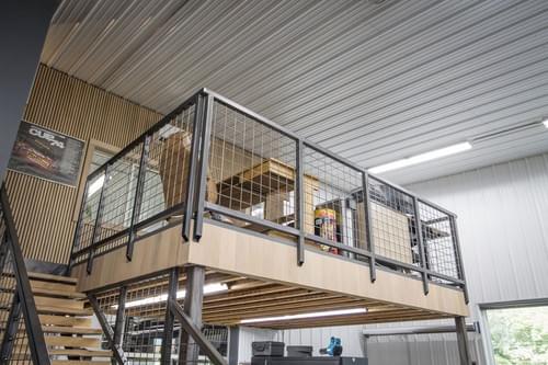 #61: Is a pre-owned 35’W x 40’D space with a 225 sq ft mezzanine, has a half bathroom, tankless water heater, A/C, LED lighting throughout, multiple 220v outlets, and 2 – 6′ x 6′ windows.