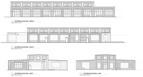Each space will have its own central heating and air conditioning system, individual bathrooms, electrical service, glass garage door and pedestrian-door entrances.